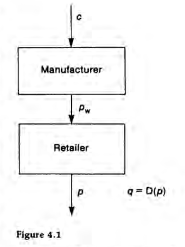 - A single supplier, called the monopolist or the manufacturer, produces an intermediate good at a constant unit cost \(c\).